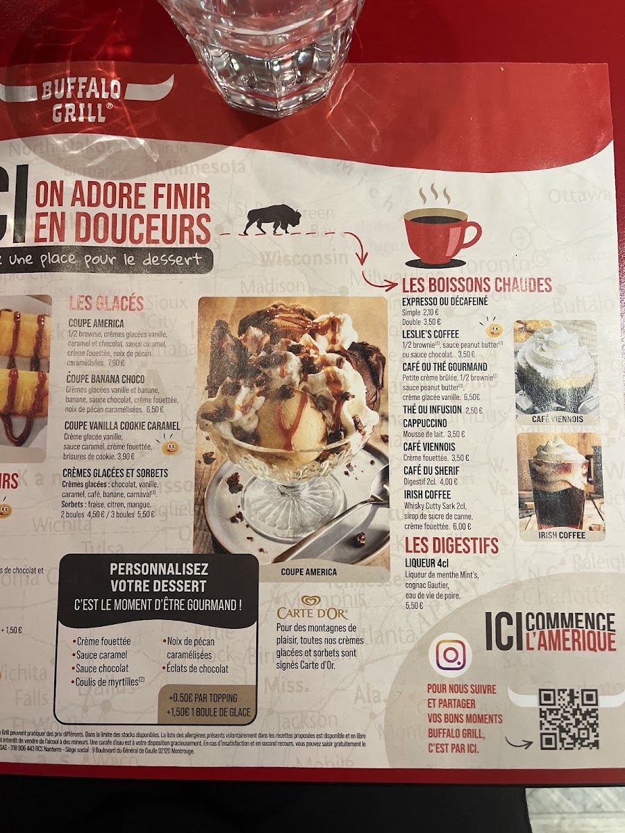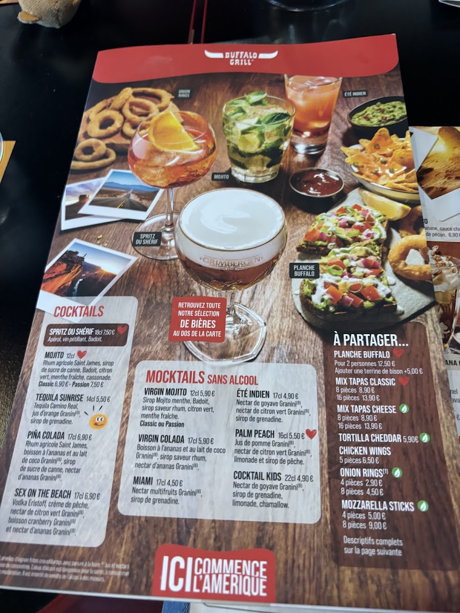 For those craving something savory, the Pave de Bison Marine brings the true taste of America. The standout Côte de Bœuf promises tender perfection, while the BBQ Party platter serves a feast for two, ensuring a memorable dining experience. Patrons have praised the friendly service and exceptional flavors — a testament to Buffalo Grill's dedication to quality. Don't miss out on their tempting desserts, as they round off a delightful meal. Indulge in a vibrant atmosphere that makes each visit a celebration of taste!